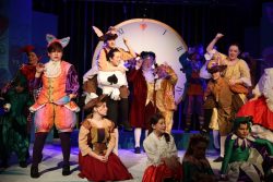 Panto writer Ben Crocker has taken the bones of both Wonderland and Through the Looking Glass and moved the story on for an indeterminate period – playing with time, one of the themes of Wonderland.