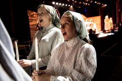 That buoyant spirit, that courage in the face of insurmountable troubles, that unbreakable commitment to their faith, is brought out with brilliant performances, led by Luke Whitchurch as the funny, kind, irrepressible Tevye, with his misquotes from the Good Book and his “on the other hand” way of coming round to a position that is diametrically opposed to where he thought he was.