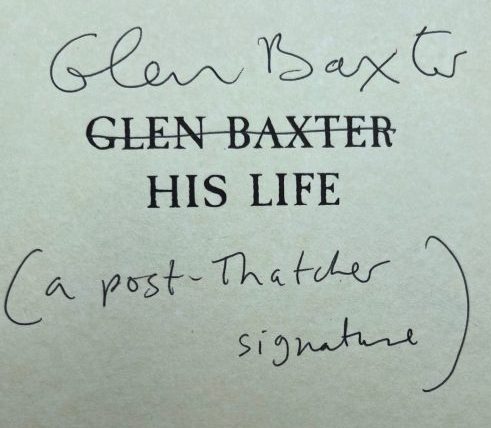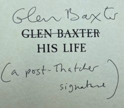 That November, the Artiste Gallery in Bath had an exhibition of the paintings of surrealist absurdist cartoonist and writer Glen Baxter, already famous for his hilarious pictures with their bizarre captions, often underlining the pompous nonsense of arts and literary speak.