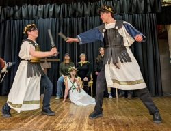 Thomas Hardye School A-level student Tilda Samson is the youngest director, jointly running the Nun’s Priest’s Tale with Jordan Wiseman. It’s the tale of a vain but highly-strung cockerel, his beautiful hen-wife and a wily fox with plans for his next meal.