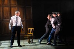 This remarkable production takes place on a stark set designed by Gary McCann, oozing the dejection and misery of a penitentiary for lifers and long-term offenders, run by a closed cabal of scheming, brutal and God-proclaiming staff.