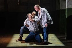 This remarkable production takes place on a stark set designed by Gary McCann, oozing the dejection and misery of a penitentiary for lifers and long-term offenders, run by a closed cabal of scheming, brutal and God-proclaiming staff.