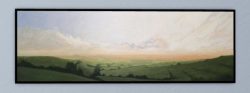 Each painting responds to a particular moment: storms moving over the valley, the evening sun breaking through cloud and illuminating the fields below, as well as quieter, more contemplative passages. Subtle changes of light and atmosphere are explored through colour, line, and many layers of paint.